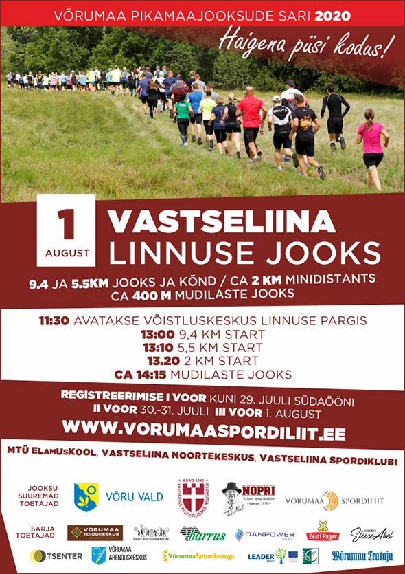 V ETAPP / Laupäev, 1. august kell 13:00 7. VASTSELIINA LINNUSE JOOKS – võistluskeskus Vastseliina linnuse pargis (mitte linnuses – VAATA KAARTI ) / 9.4 (MN16-60), 5.5 (MN12-14 ja VABAdistants) ja 2 km minidistants. Rada kulgeb maastikul. Korraldavad: MTÜ ELamUsKOOL, Vastseliina Spordiklubi ja Vastsleiina Noortekeskus