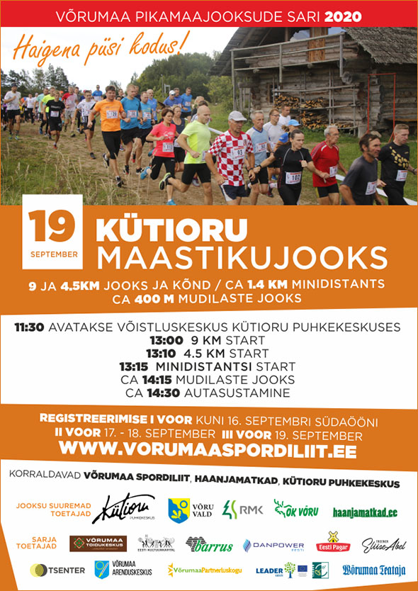 IX ETAPP / Laupäev, 19. september kell 13:00 9. KÜTIORU MAASTIKUJOOKS – võistluskeskus Kütioru puhkekeskuses / 9, 4.5 ja 1,4 km kruusateel ja suuremas osas maastikul. Korraldajad: Võrumaa Spordiliit, Haanjamatkad ja Kütioru Puhkekeskus. Idee autorina jooksu patroon Laur Lukin.