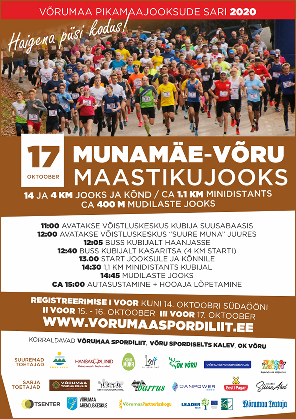XI ETAPP / Laupäev, 17. oktoober kell 13:00 36. MUNAMÄE-VÕRU MAASTIKUJOOKS – võistluskeskus Kubija Suusabaasis ja Suure Munamäe jalamil / 14 ja 4 km asfalt- ja kruusateel ning suuremas osas maastikul. 14 km start Suure Muna kohviku ees Haanjas. Allamäge jooks – stardi ja finishi kõrguste vahe on 193 meetrit.  4 km start Kasaritsas. Kõikide distantside finish, 1,1 km mindistants ja mudilaste jooks Kubija suusabaasis. Korraldaja: Võrumaa Spordiliit Kaasa aitavad OK Võru ja Võru Spordiselts Kalev