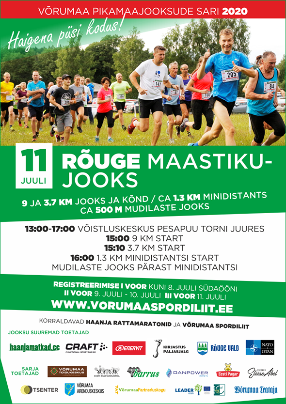 II ETAPP / Laupäev, 11. juuli kell 15:00 6. RÕUGE MAASTIKUJOOKS – võisluskeskus Rõuge Ööbikuoru külastuskeskuses Pesapuu torni juures. Distantsid 9 km (MN16-60 klassidele võistlusdistants), 3,7 km (kohustuslik MN12-MN14 klassile ning teistele vabadistants) maastikul. Korraldajad: Haanjamatkad ja Võrumaa Spordiliit