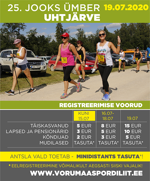 III ETAPP / Pühapäev, 19. juuli kell 17:00 25. JOOKS ÜMBER UHTJÄRVE – võistluskeskus Uhtjärve Ürgoru Nõiariigis / 8.9, 3.7 ja 1.5 km pikk distants esimene pool kruusateel ja asfaldil teine pool ning 3.7 km maastikul. Lühema distantsi start Uhtjärve laululaval. Korraldaja: Antsla vald