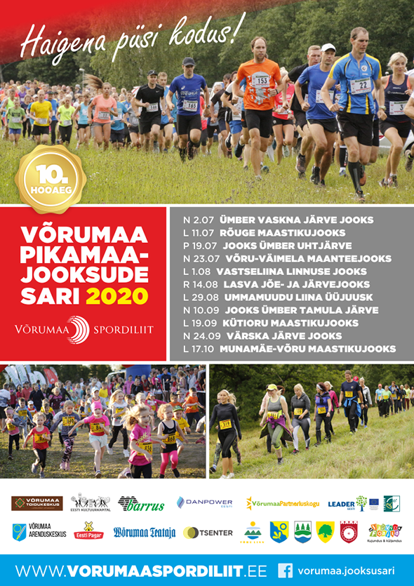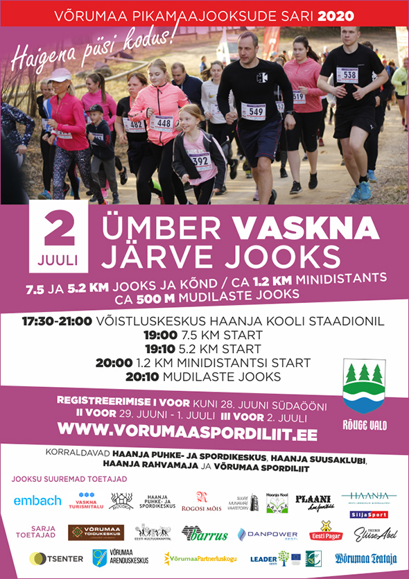 I ETAPP / Neljapäev, 2. juuli kell 19:00 24. ÜMBER VASKNA JÄRVE JOOKS – võisluskeskus Haanja Kooli staadionil Haanja Puhke- ja Spordikeskuses / 7,5 km (MN16-60 klassidele võistlusdistants), 5,2 km (kohustuslik MN12-MN14 klassile ning teistele vabadistants) asfalt- ja kruusateel. Korraldajad: Haanja Suusaklubi, Võrumaa Spordiliit