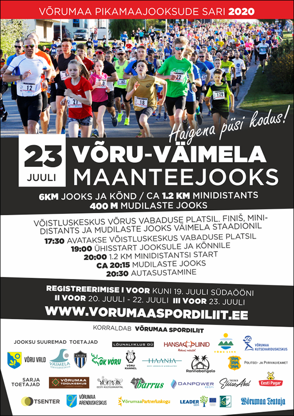 IV ETAPP / Neljapäev, 23. juuli kell 19:00 39. VÕRU-VÄIMELA MAANTEEJOOKS – start Võrus Vabaduse platsilt, finish Väimela staadionil / 6 km jooks ja kõnd. 1.2 km minidistants Väimelas. 400 m mudilaste jooks Väimea staadionil. Korraldaja: Võrumaa Spordiliit.