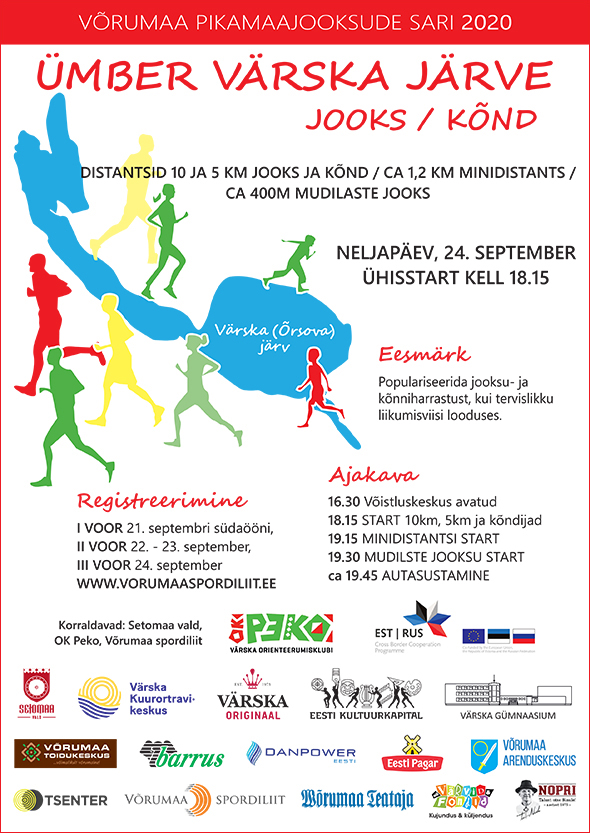 X ETAPP / Neljapäev, 24. september kell 18:15 ÜMBER VÄRSKA JÄRVE JOOKS – võistluskeskus Värska Gümnaasiumi staadionil 10 (2 ringi, võistlusdistants MN16-60 klassidele) ja 5 km (1 ring, kohustuslik MN12-MN14 klassile ning teistele vabadistants) maastikul. Kavas 1,2 km minidistants ning ca 400 m mudilaste jooks. Korraldaja: Setomaa vald, Värska OK Peko – Peakorraldaja: Rein Zaitsev.