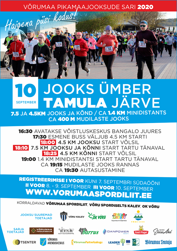 VIII ETAPP / Neljapäev, 10. september 39. JOOKS ÜMBER TAMULA JÄRVE – võistluskeskus Tamula rannas bangalo juures / 7.5 (MN16-60 klassidele võistlusdistants), 4.5 km (kohustuslik MN12-MN14 klassile ning teistele vabadistants) ja 1.4 km asfalt- ja kruusateedel ning suuremas osas maastikul. Korraldajad: Võrumaa Spordiliit, Võru Spordiselts Kalev, Orienteerumisklubi Võru